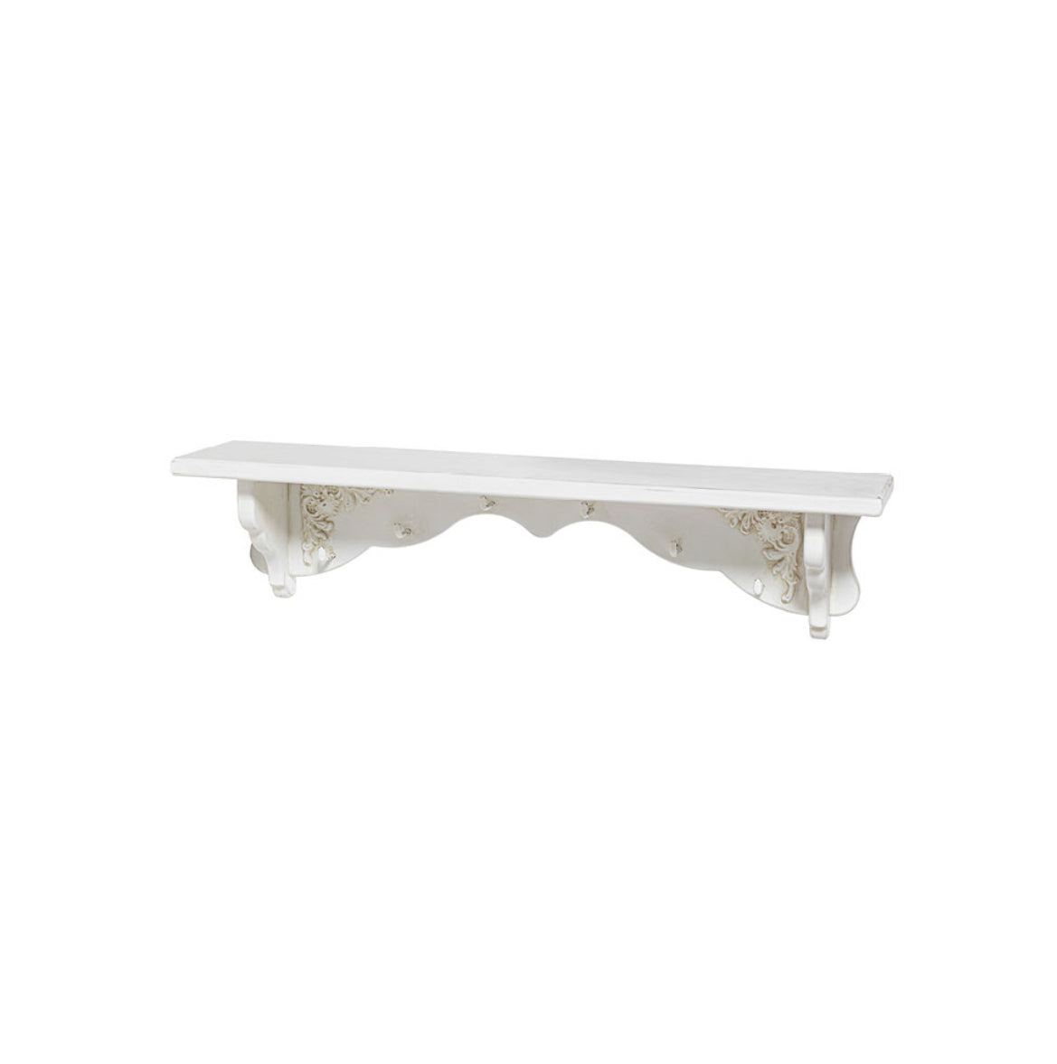 Utilissima mensola realizzata in legno e MDF, dal colore bianco sporco, spolverato per un effetto ancora più shabby chic ! Si adatta ad uno stile di arredamento contemporaneo ed anche molto romantico, può essere utilizzata in cucina per riporre tutte le spezie a vista e nella parte inferiore presenta dei piccoli ganci dove è possibile anche esporre delle tazze, per una maggiore praticità in cucina. Può essere abbinata alla dispensa della stessa linea e alla piattaia.
