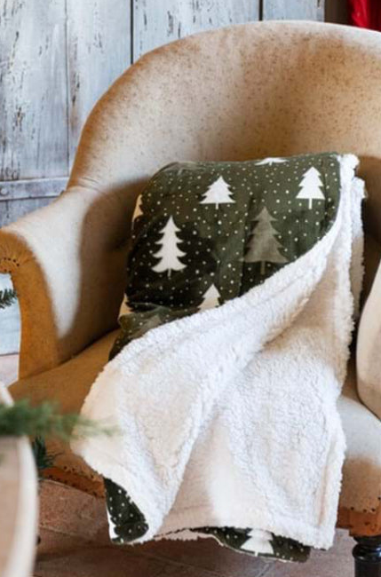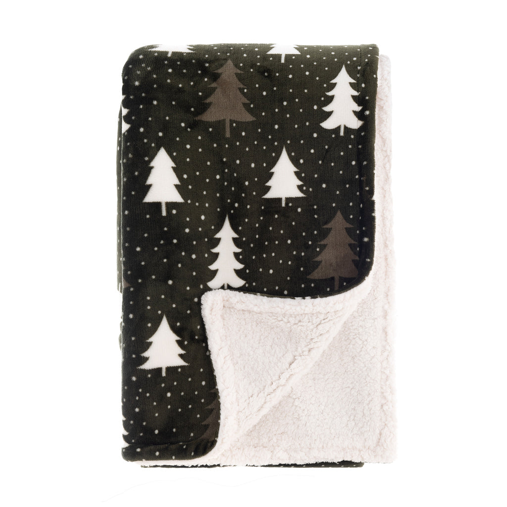 Avvolgente e soffice questo plaid in sherpa con deliziosa fantasia di alberi di natale , 100% poliestere ha una grammatura di 420 GSM che lo rende super caldo per rilassarsi nelle giornate più fredde e durante il periodo invernale. Ideale come coperta da divano, poltrona o semplicemente decorativo da poter mettere anche sul letto.
