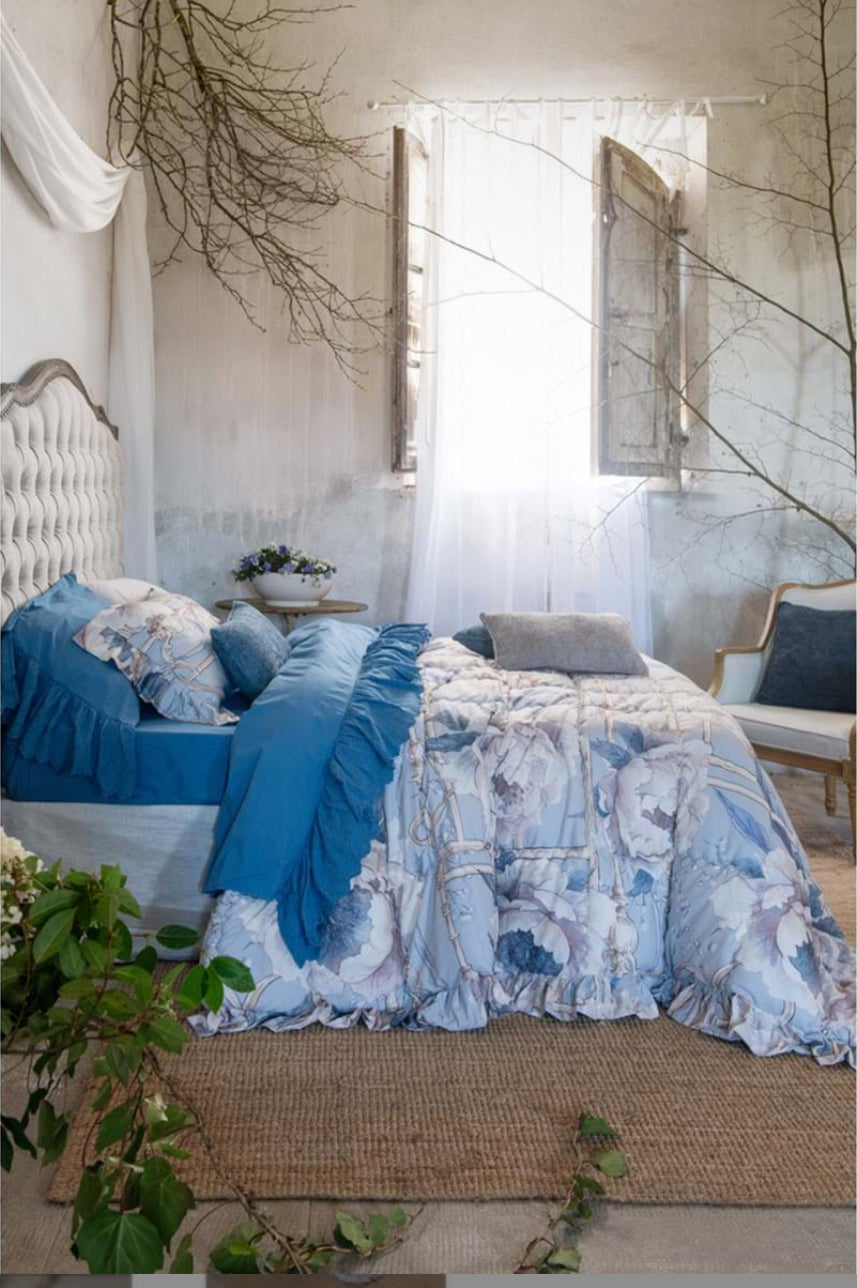Raffinato set di 2 copriguanciali in morbida microfibra 370 gsm ideale per i periodi più freddi, con gala decorativa lungo il bordo, decorata con stampa floreale con peonie nei toni delicati dell'azzurro. Contenuta in una borsa con manici per poterla piegare e riporla in ordine nell’armadio. Possibilità di abbinare i copriguanciali della stessa linea , per un letto dallo stile raffinato e romantico