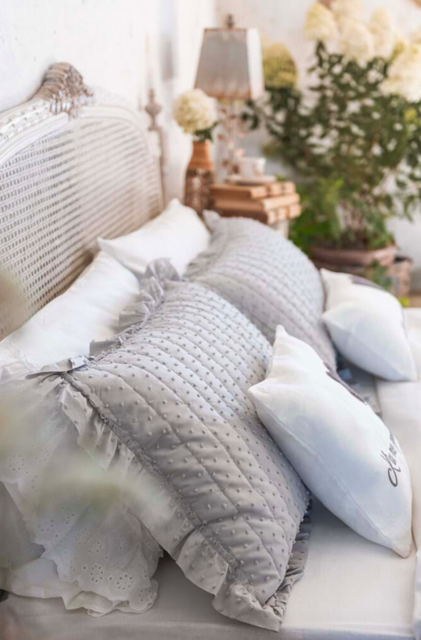 Particolare e simpatica questa trapunta dal colore grigio scuro presenta sulla superficie dei pois in rilievo con piccola balza sul bordo. In 100% Microfibra di poliestere da 120 GSM, perfetta per la mezza stagione. Si adatta ad a una camera da letto moderna e fresca, ma anche in un contesto contemporaneo, fatto di linee semplici e colori basici. Nel set sono compresi due copriguanciali